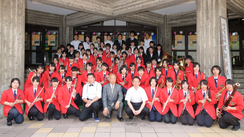 前列中央左よりOB会 斉藤加之氏、和田武久会長、窪田校長